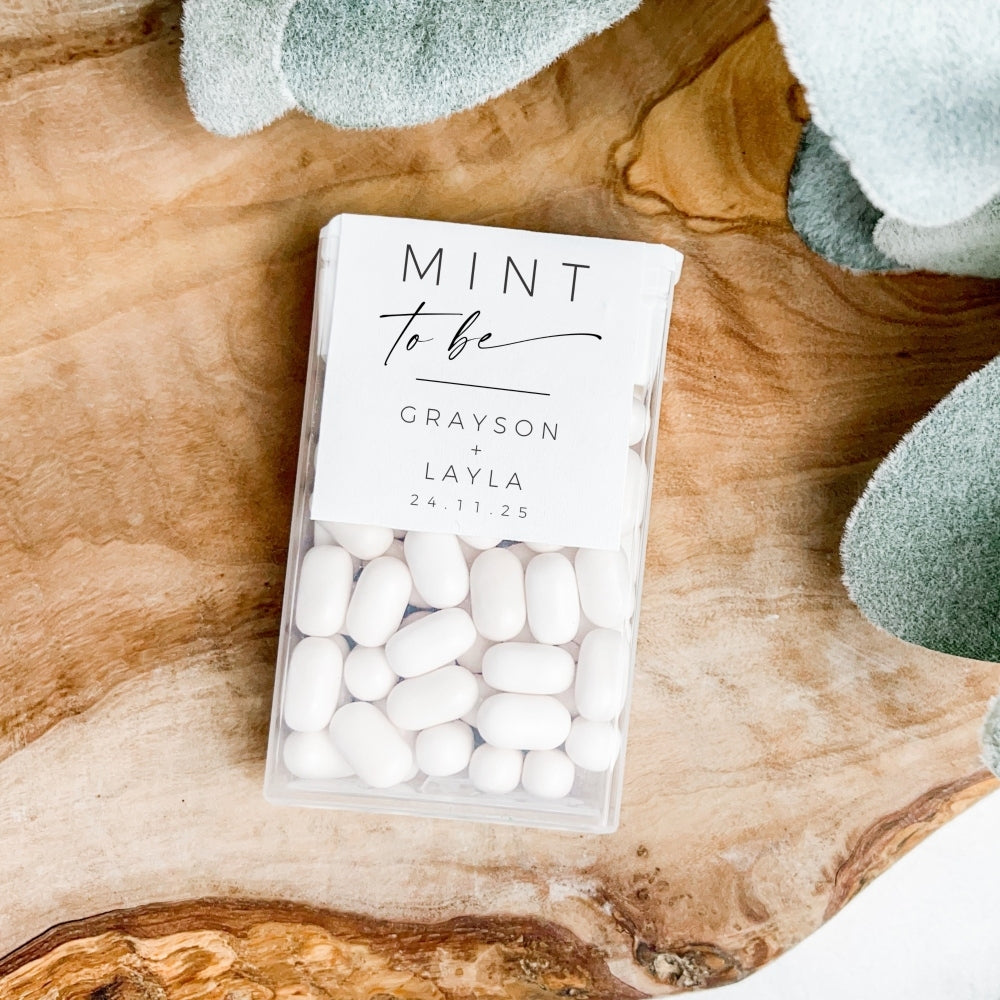 Modern Minimalist Personalised Tic Tac or Stickers - Custom Mint To Be Favours or Wedding Party Labels