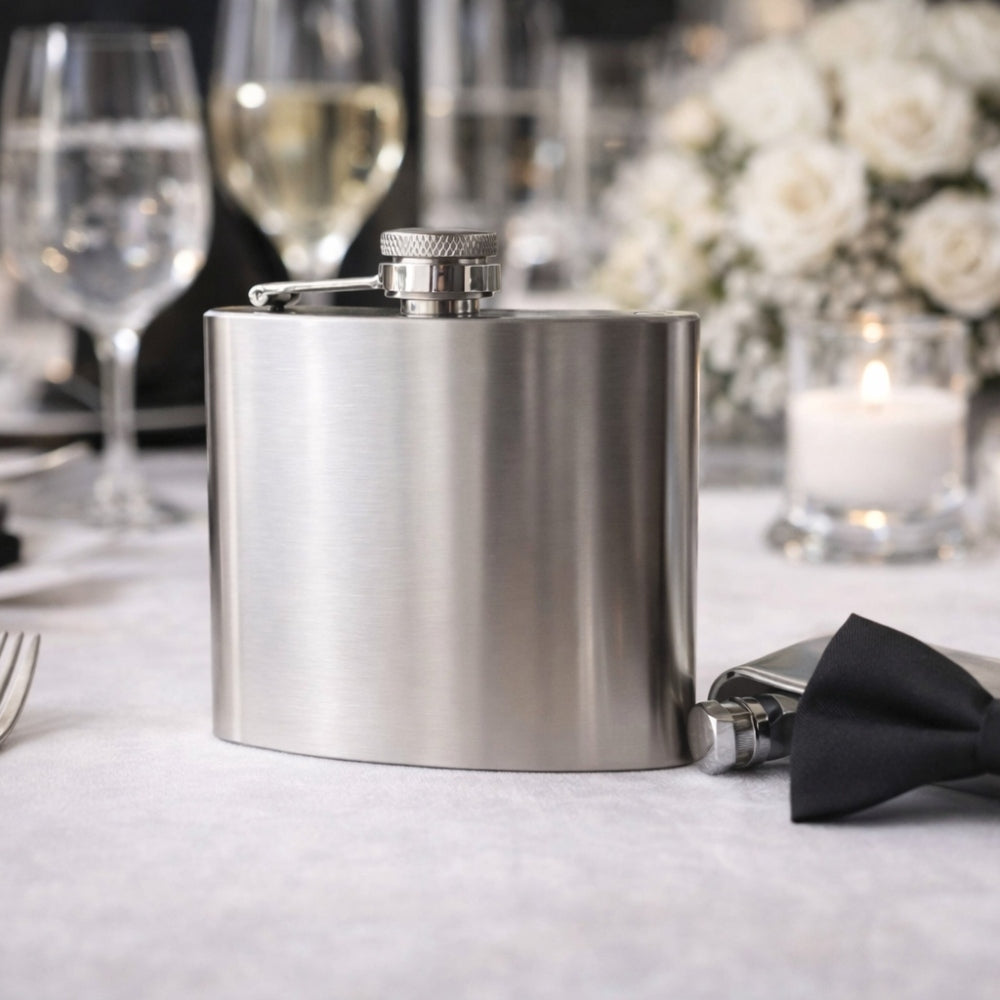 Decidedly different, yet timeless and traditional, this handsome, hip flask is an unforgettable gift for any gentleman! Quality brushed stainless steel means that this flask will see your male wedding guests through many toasts to your health and happiness.