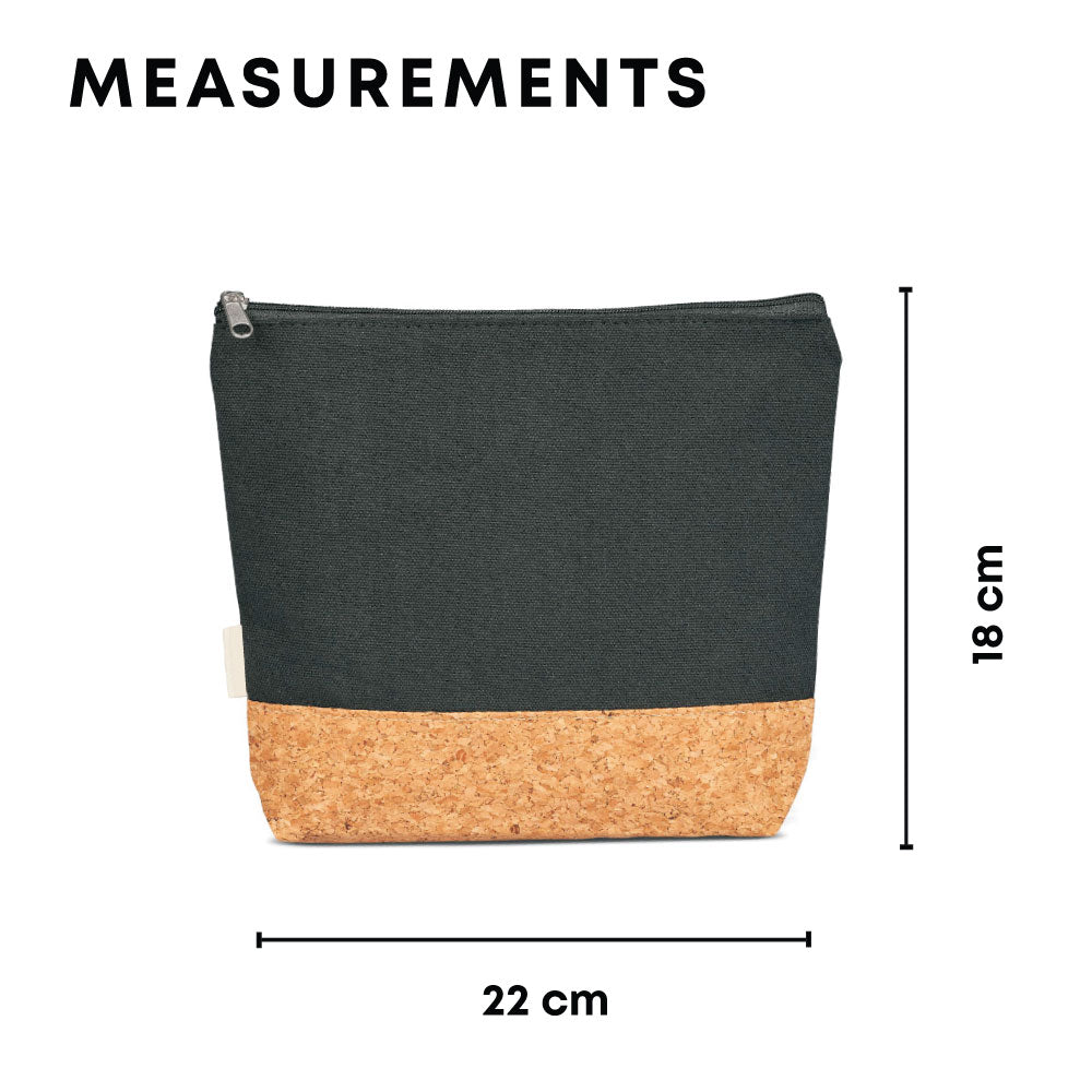 Our eco-friendly Cosmetic and Toiletry Bag, a perfect blend of style and sustainability. Crafted from natural cotton and adorned with a chic cork bottom panel, this bag exudes a timeless charm while contributing to a greener planet. The bag's dimensions of 22cm (length) x 5cm (width) x 18cm (height) makes it ideal for organizing your beauty essentials in a compact and stylish manner.