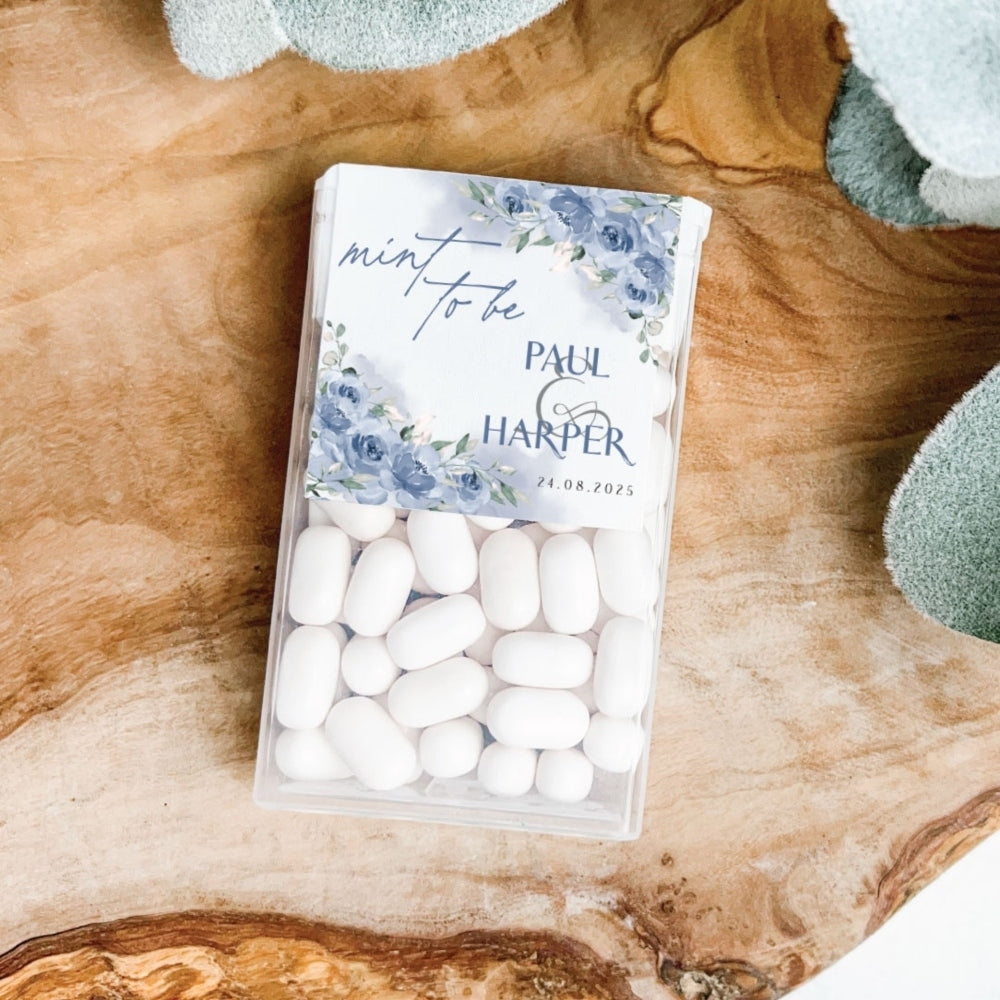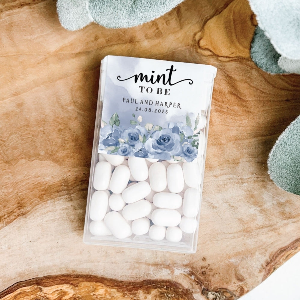 Personalised Tic Tac Stickers - Custom Mint To Be Favours or Wedding Party Labels in Serene Blues