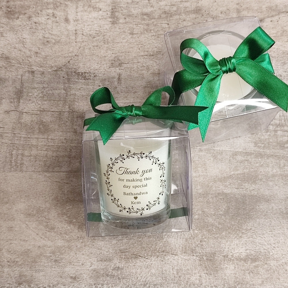 Surprize your guests with this beautiful vanilla wax filled votive candle.