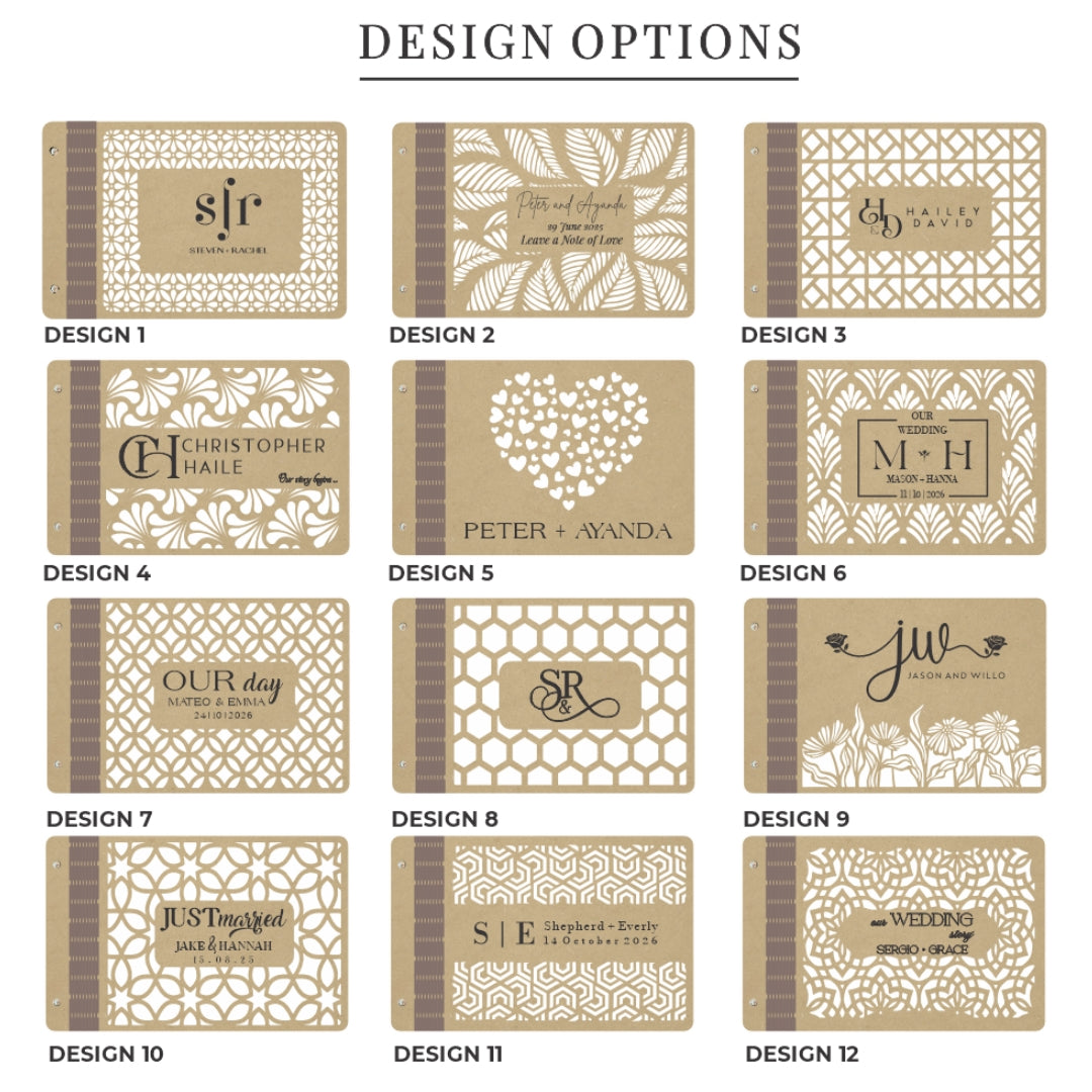 Crafted with precision and love, our personalised wooden guestbooks are a stunning addition to any celebration. Featuring intricate laser-cut detailing and your custom names and date engraved on the cover, this guestbook is designed to impress.