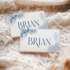 Our Serene Blues Stationery Collection place card holders features beautiful blue florals with hints of greenery.
