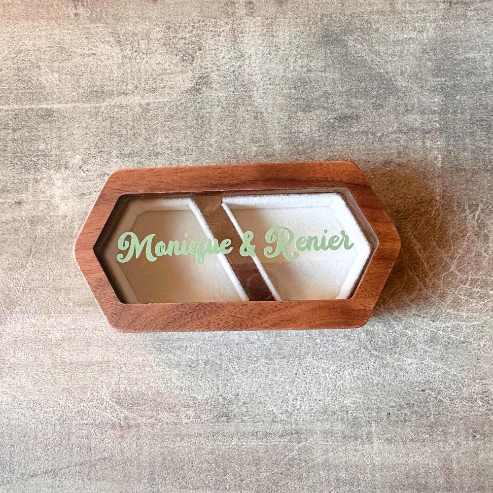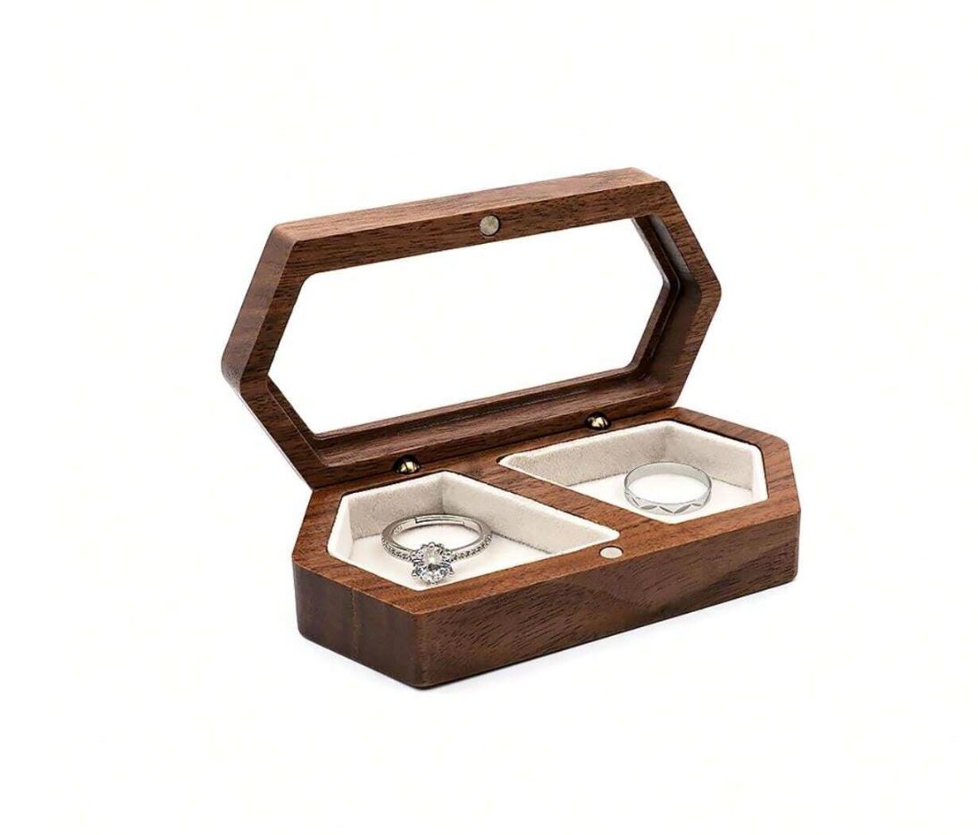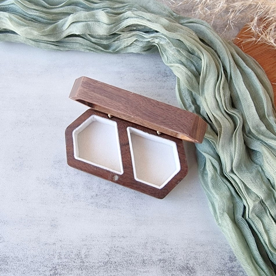 This walnut wooden ring box is the perfect way to store and present your precious rings on your special day. This ring box is not only practical but also a beautiful keepsake to treasure for years to come.