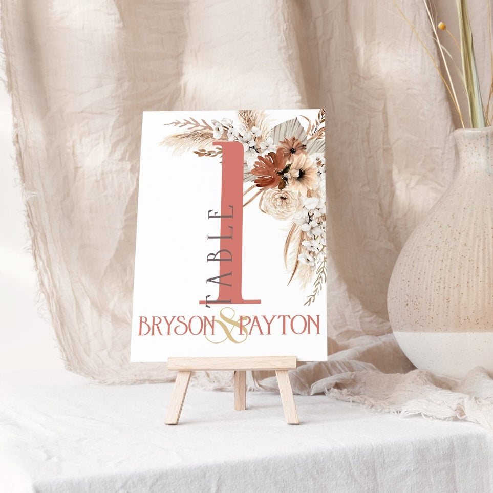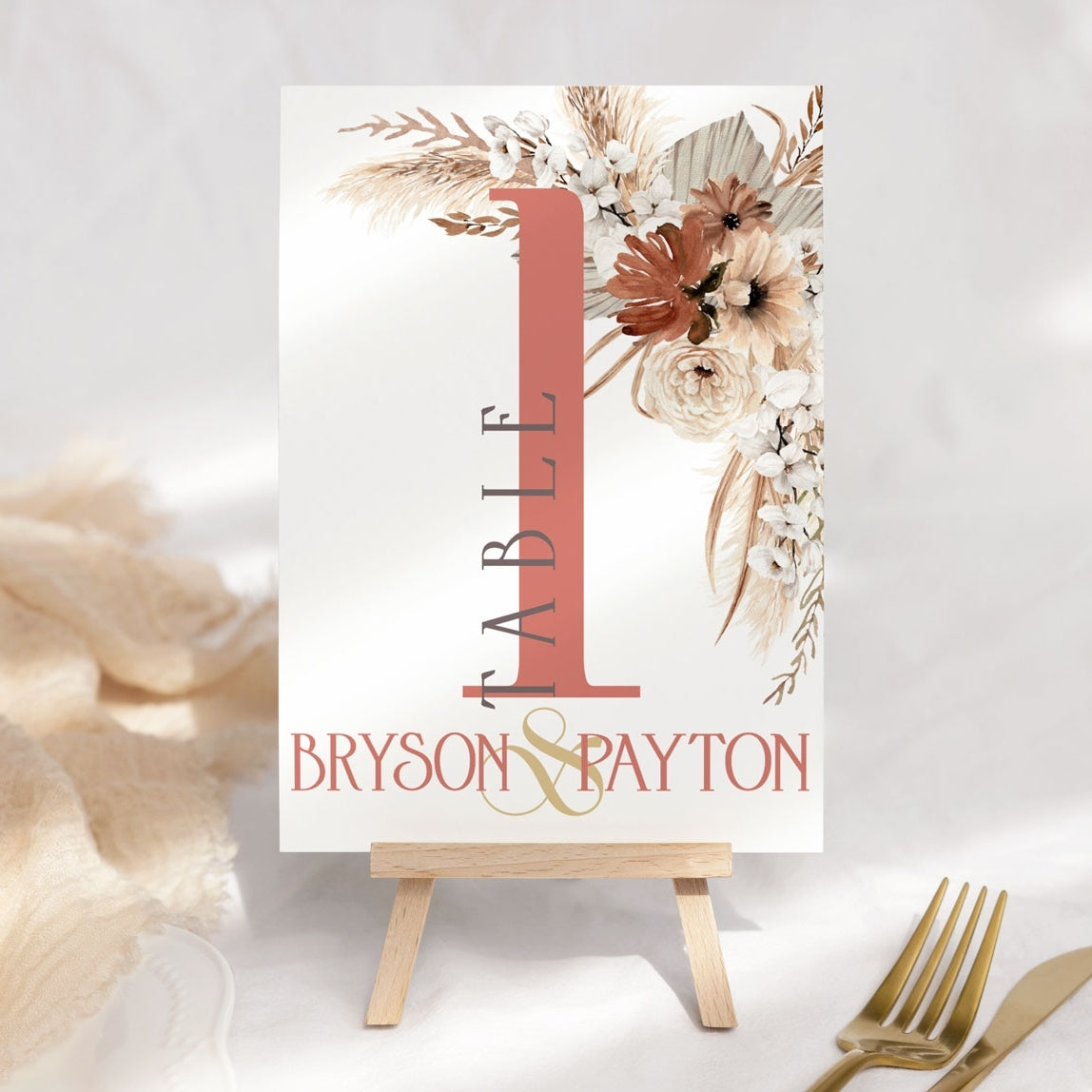 A Printed Table Number with Wild Romance Boho Stationery Design