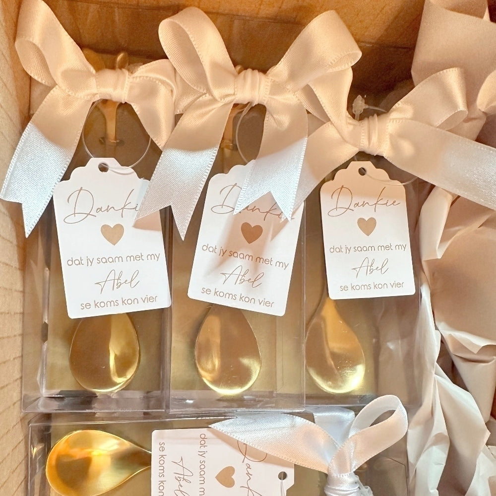 This elegant gold leaf design spoon is a beautiful thank you gift that guests can use to serve condiments or stir their morning coffee. It is perfect as a wedding favour or as a gift at a bridal shower or baby shower. Perfect as an autumn favour.