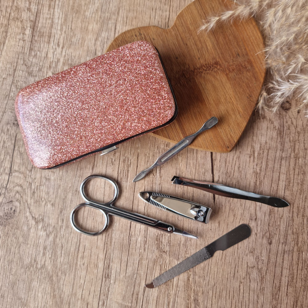 Say 'thank you' to your bridesmaids with a thoughtful and practical gift they'll love - our deluxe Manicure Kit Bridesmaid Gift from Simply Favours! Perfect for pampering and prepping for the big day, this manicure set includes everything your bridesmaids need to achieve a salon-worthy manicure at home. With a variety of tools, including nail clippers, scissors, and a cuticle pusher and nail file this kit is perfect for shaping and maintaining nails. Each kit is beautifully packaged in a cute pink sparkle glitter case perfect to keep your tools safe or to grab on the go.
