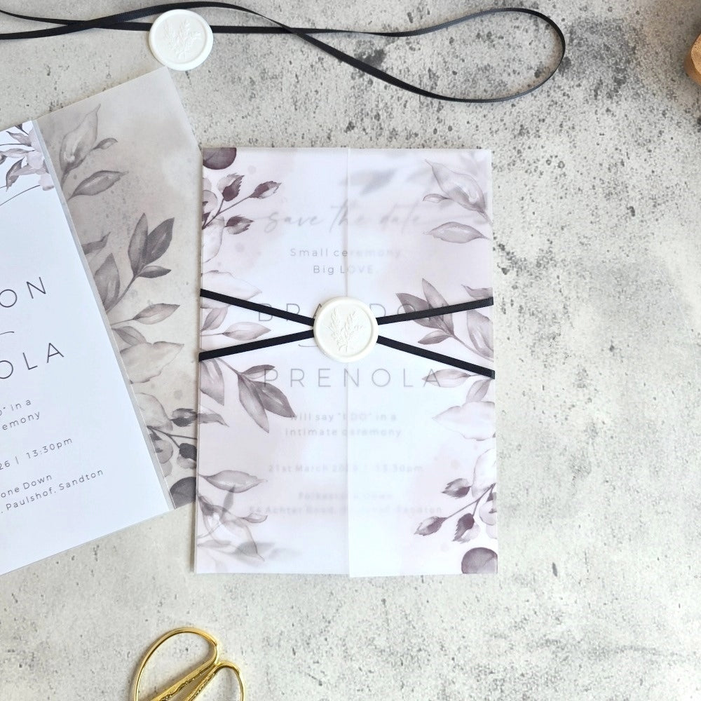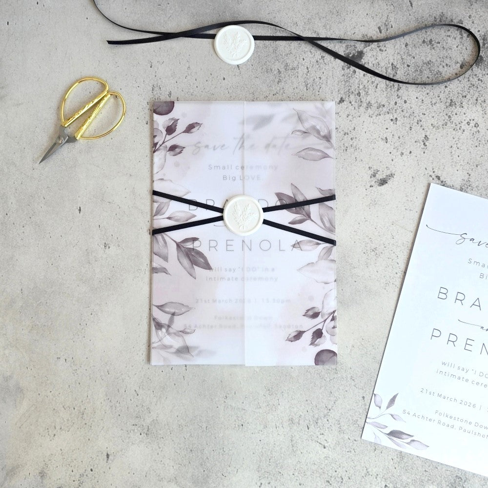 Modern Minimalist Vellum Gatefold Envelope with Wax Seal