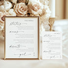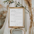 Ideal for outdoor, garden, or boho weddings, this menu will add a stylish finishing touch to your special day.