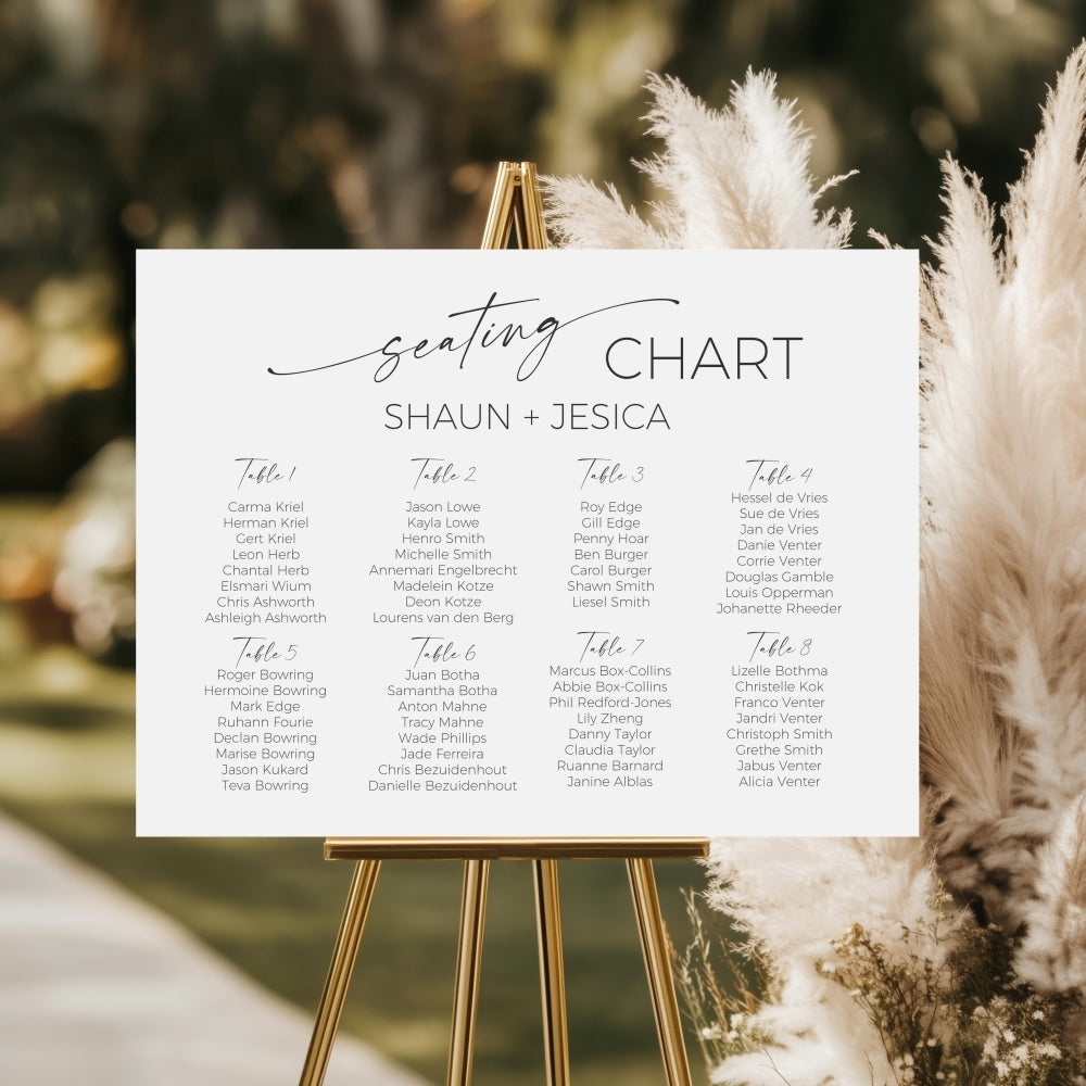 Organize your wedding or event with a custom seating chart in our Minimalist Design Style in landscape orientation. Perfect for large gatherings, this seating chart ensures your guests find their seats with ease. Fully customizable and printed on premium material for a polished finish.