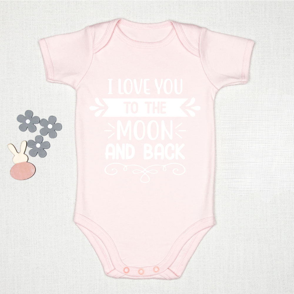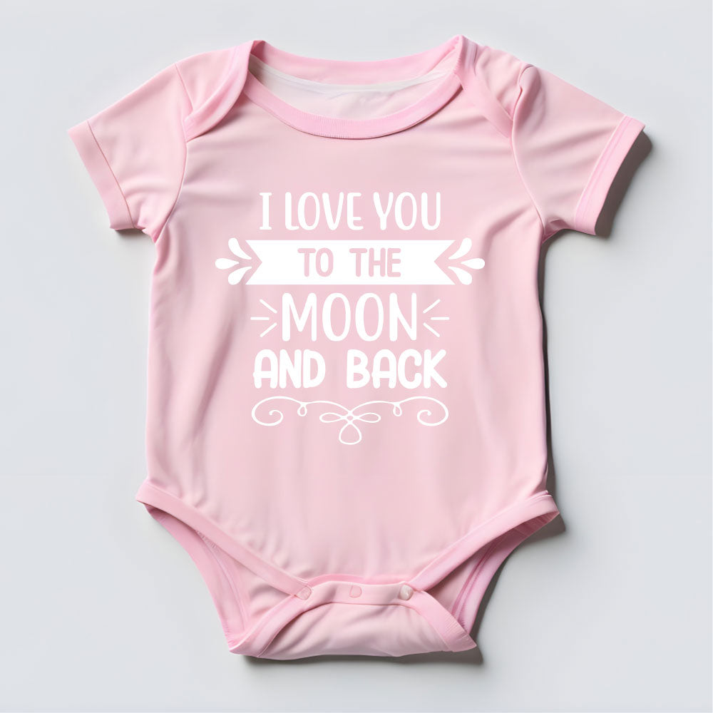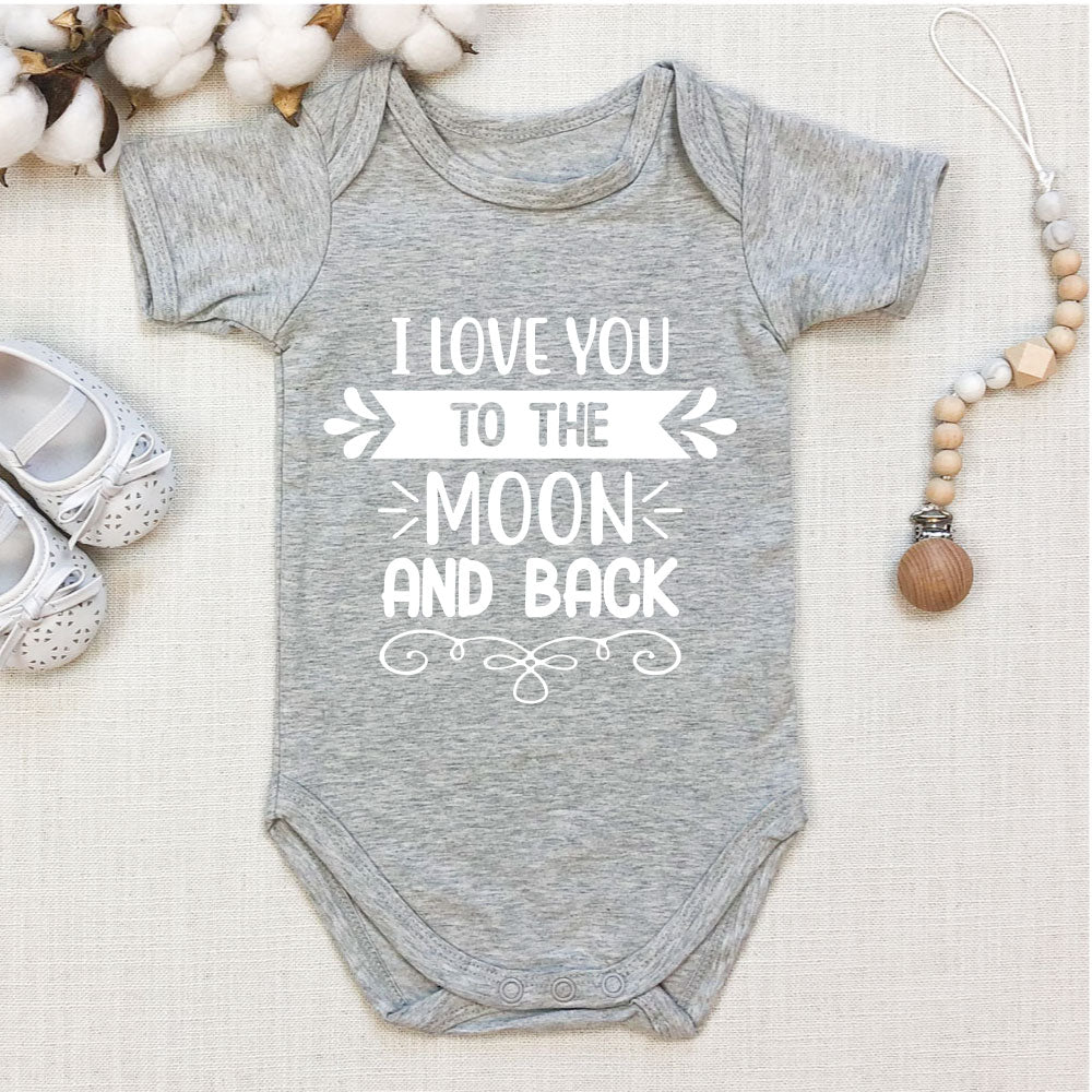 Our onesie bodysuits feature irresistibly adorable designs that adds a touch of sweetness to your baby's wardrobe. Design reads Love You to the Moon and Back.