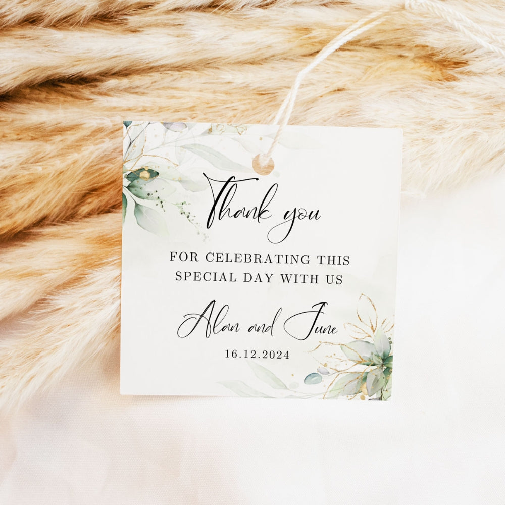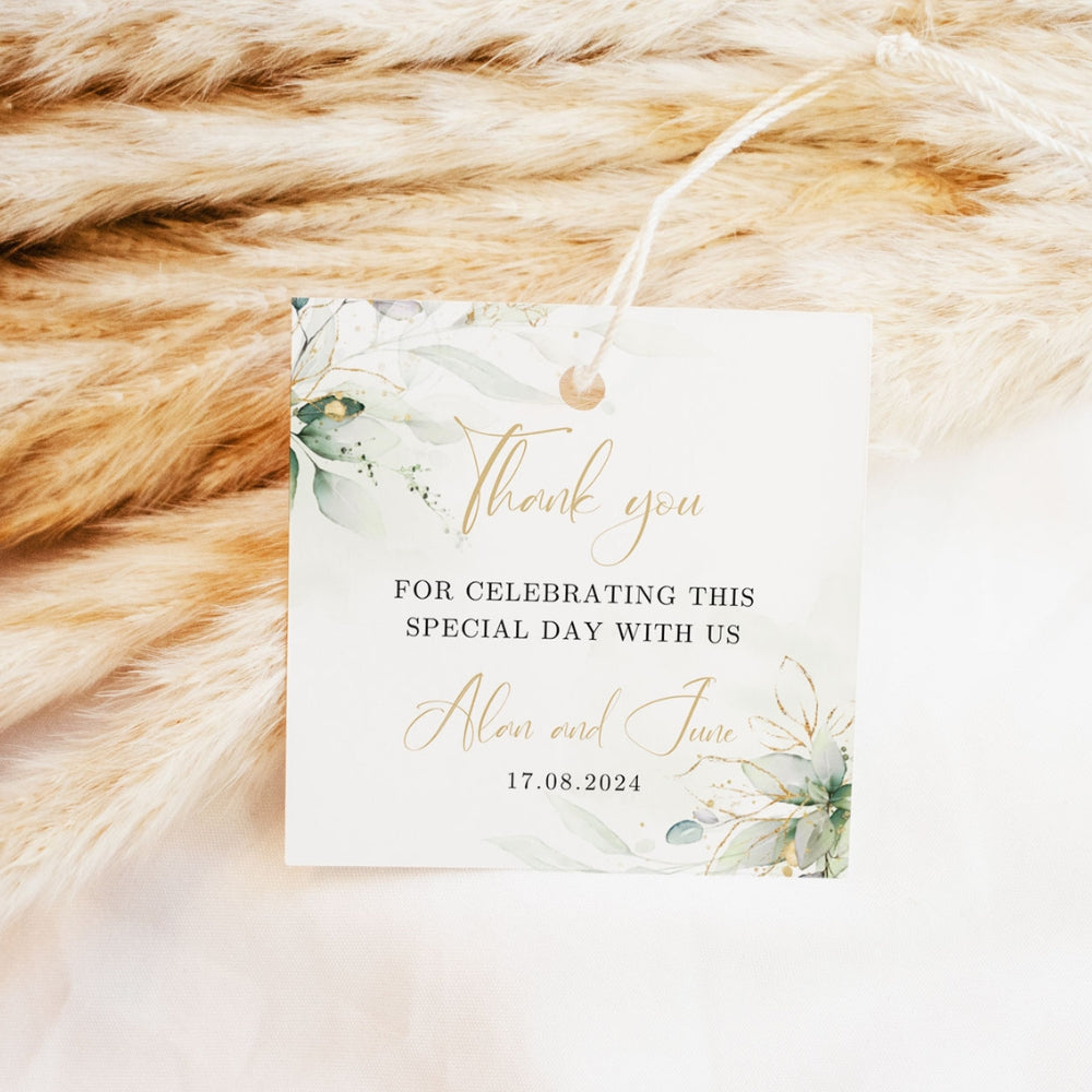 Personalize it and make your gifts extra special by adding a personalized thank you tag. This one comes with an Elegant Green Botanical design.