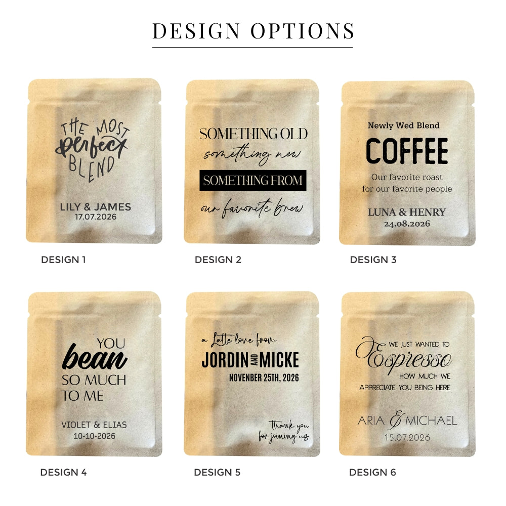 Coffee Wedding Favour - Custom Ground Coffee Sachet & Personalised Pour Over Gift