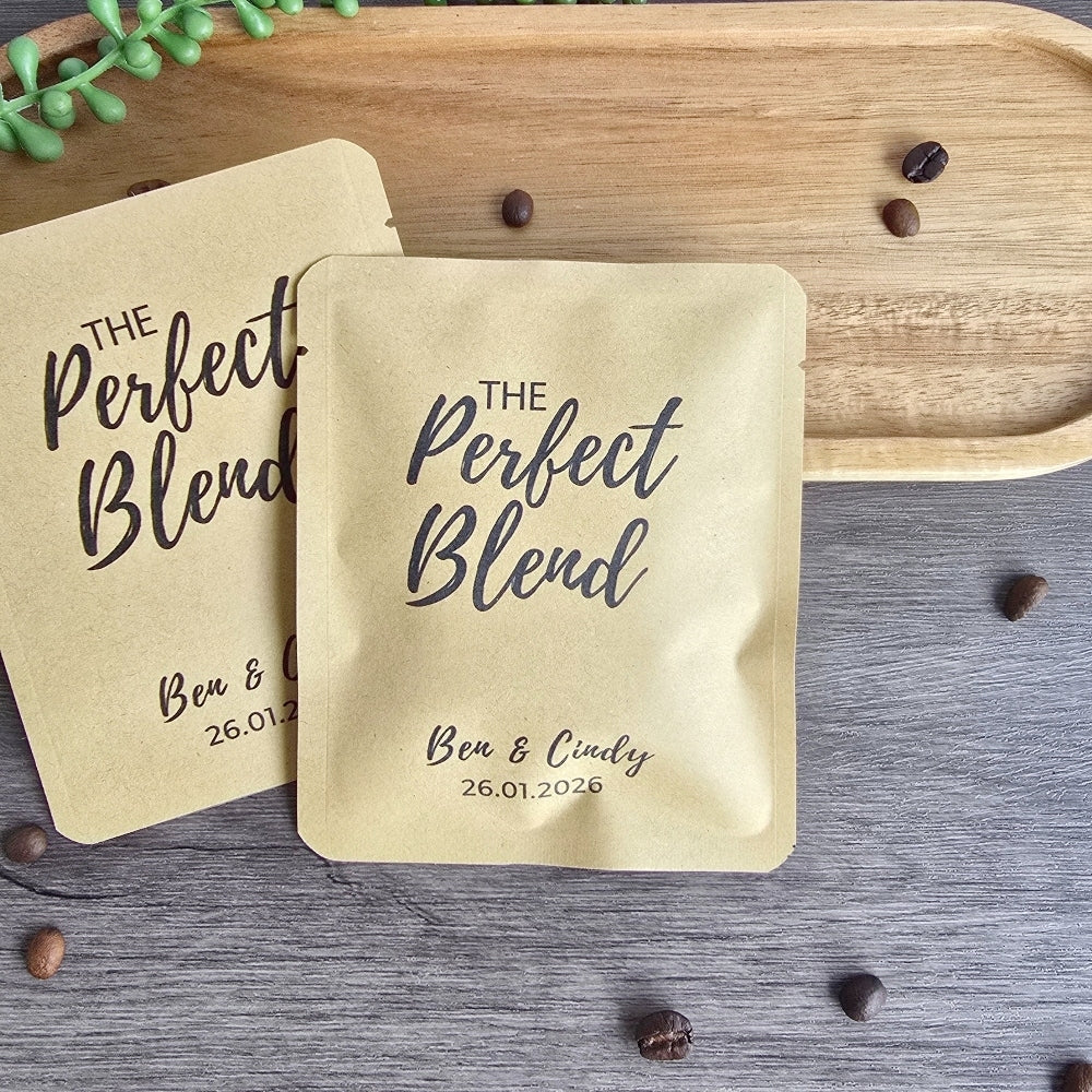 Our coffee wedding favour offers a unique and memorable way to share the joy of fresh coffee with your guests. This custom ground coffee sachet and personalised pour over gift combines convenience and elegance, delivering a rich, aromatic brew that guests can enjoy instantly. Designed for weddings, bridal showers, baby showers, corporate events, and thank-you gifts, this coffee wedding favour guarantees a lasting impression.