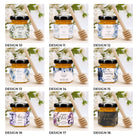 Honey in a hexagonal jar includes honey presented in hexagonally shaped honey jar with a black lid and a full colour design on a matt sticker.