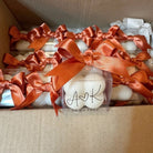 Packaging consists of 4cm x 4cm square transparent giftbox with a ribbon in the colour of your choice tied into a bow