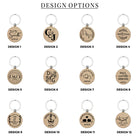 The keyring measures 4cm in diameter and is made from beech wood and zinc alloy.