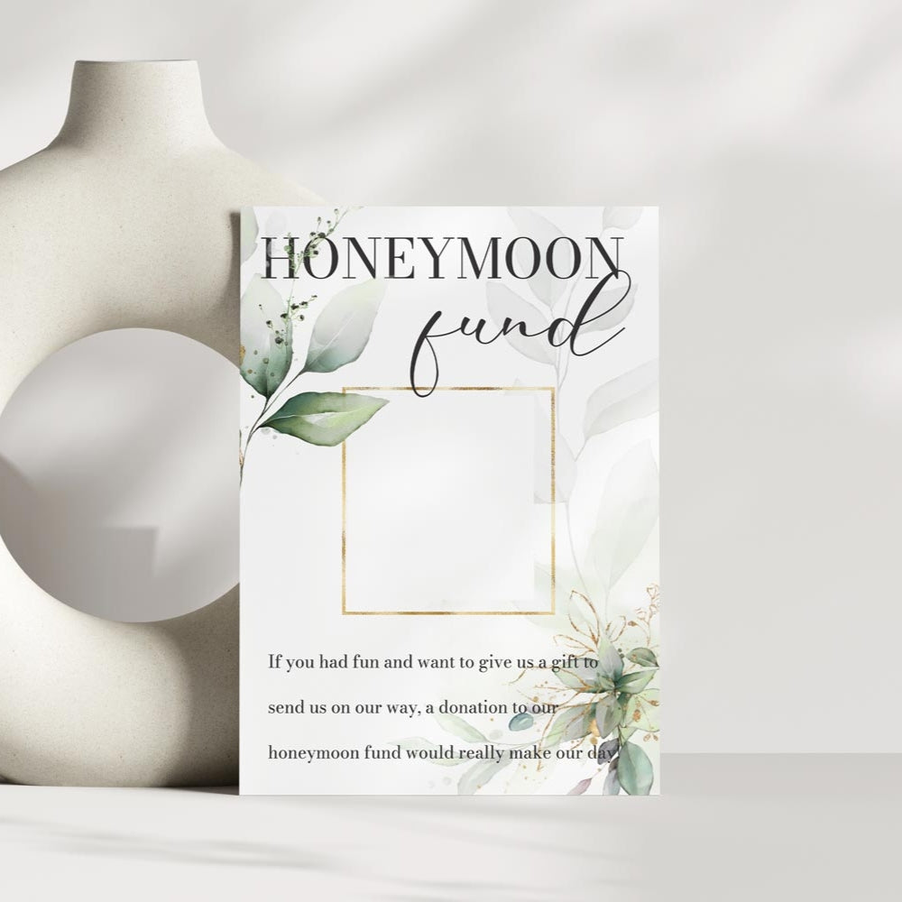 Elegant Green Botanical - Printed Honeymoon Fund Sign - A4