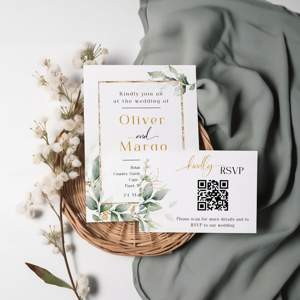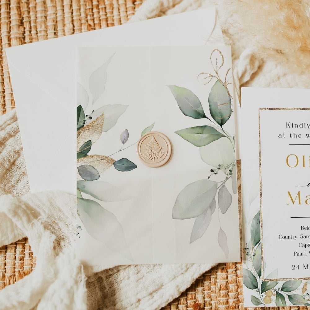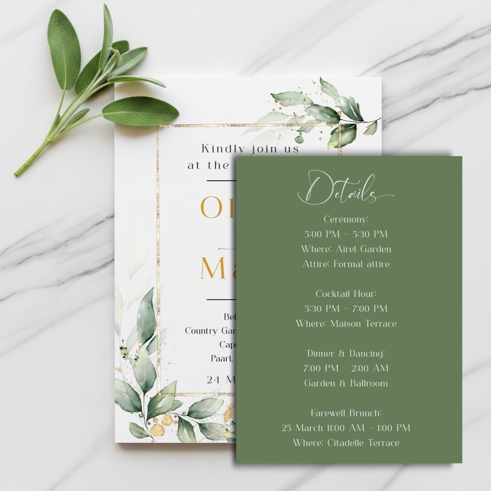 Elegant Green Botanical Wedding Invitation Set