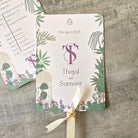 Ideal for spring and summer time weddings, parties, and other memorable occasions, whether inside or outside our Paddle Fan Program is a delightful keepsake that will also keep your guests cool while they follow along with the program. Whether you're exchanging vows or celebrating a milestone, this fan program becomes a cherished accessory that embodies the essence of your event.