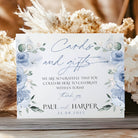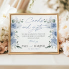This elegant sign coordinates perfectly with menus, seating charts, table numbers, and favour signs in the Serene Blues stationery set, ensuring a seamless theme throughout your wedding décor.