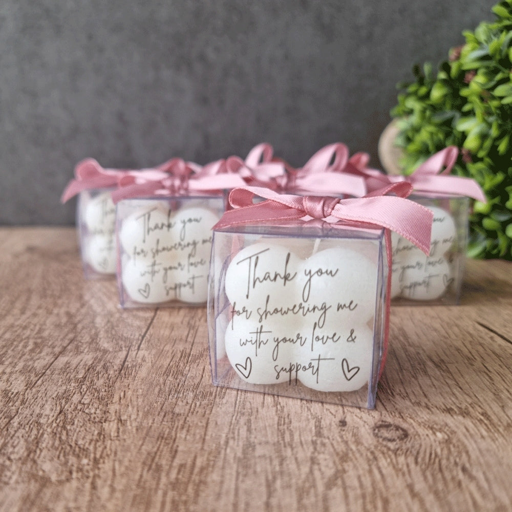 These adorable candles are perfectly sized favours for any occasion, whether it's a wedding, baby shower, bridal shower, or any other celebration that calls for a touch of magic.