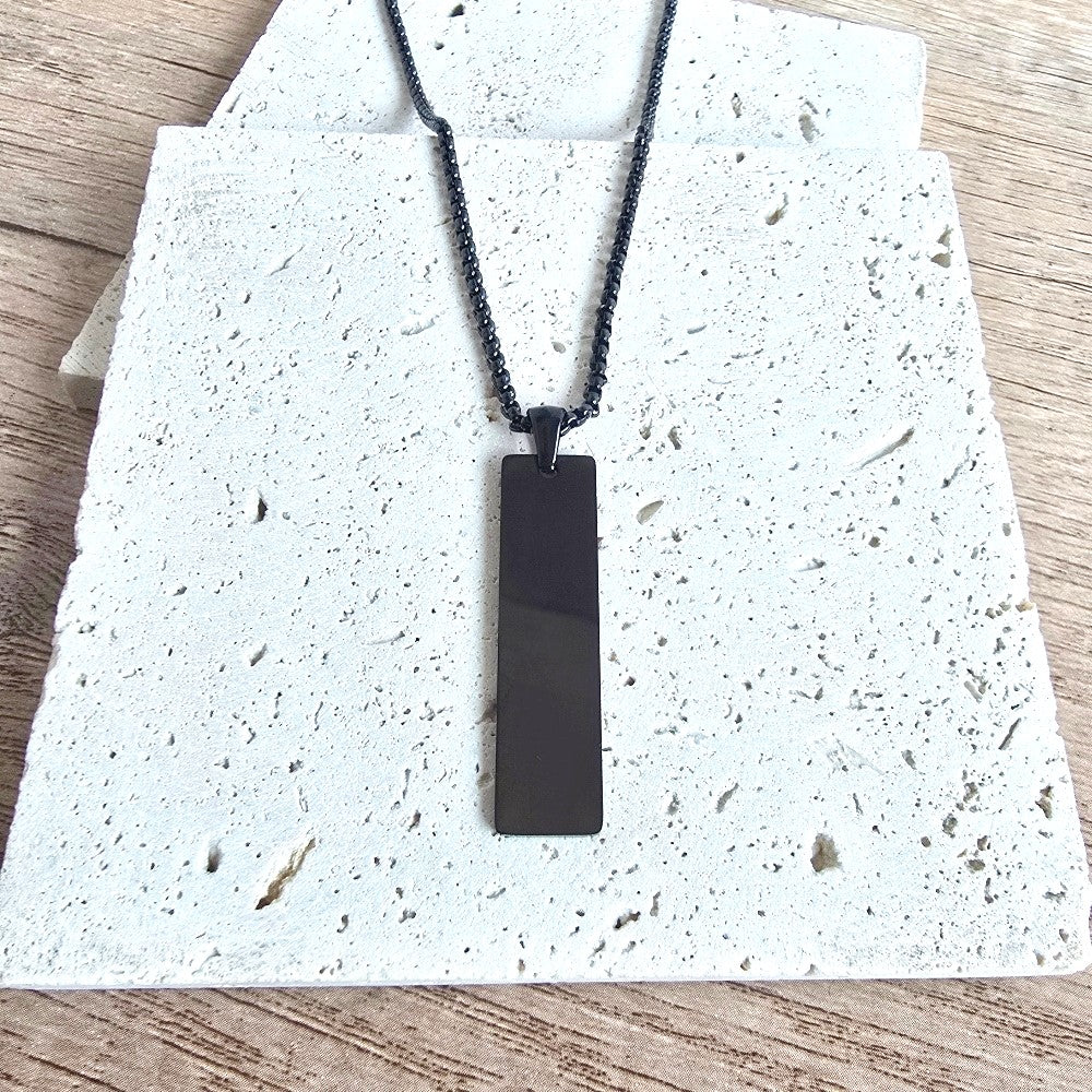 Personalised Vertical Bar Pendant Necklace- Black - Stainless Steel