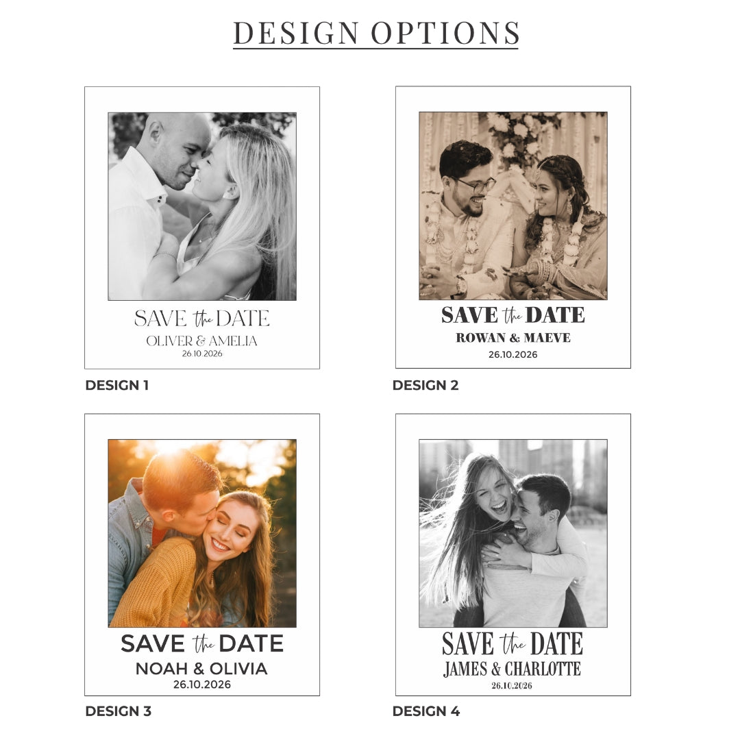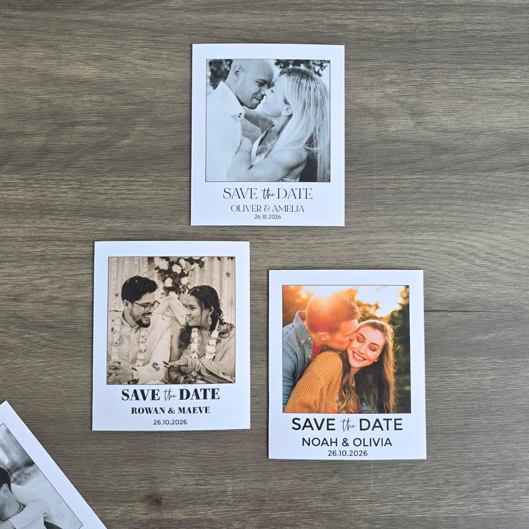 Announce your big day in style with our Polaroid-Style Save the Date Magnets. A unique and memorable way to ensure your guests never forget your wedding date! Designed to look like a classic Polaroid photo, these personalised magnets combine nostalgia with modern elegance, making them the perfect keepsake for your friends and family.