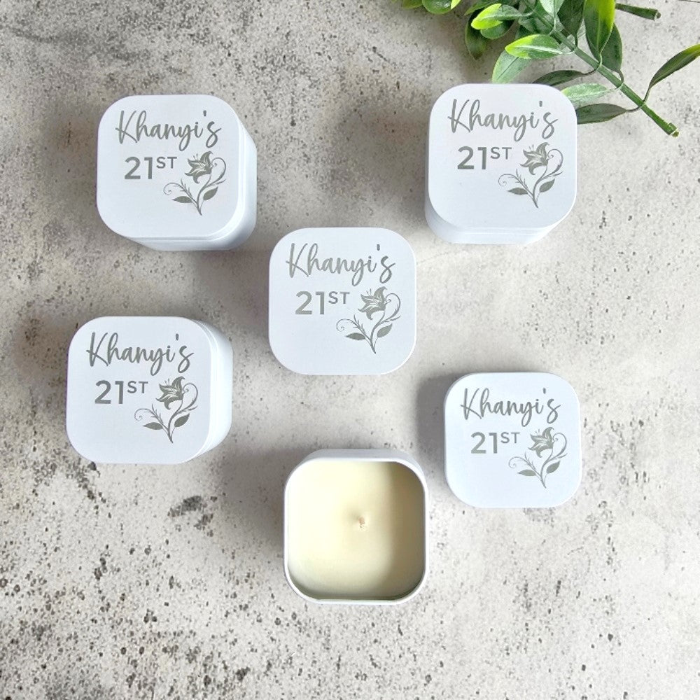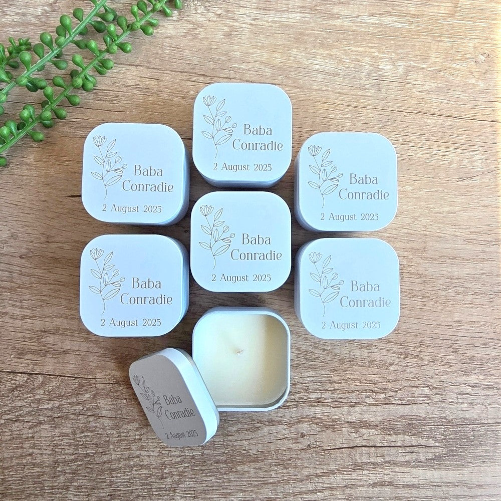 Add a touch of sophistication & warmth to your event with our Chic White Travel Candle in a Tin Favour.