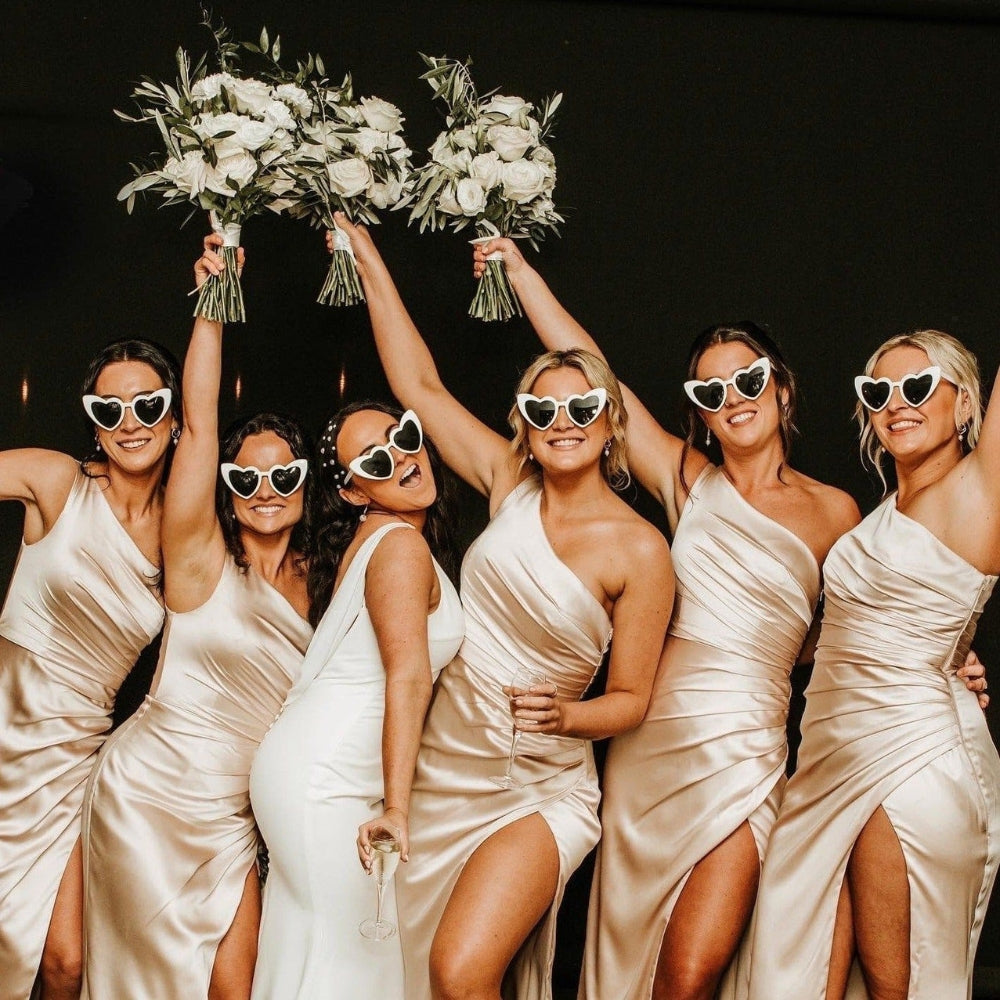 These adorable heart-shaped sunglasses are perfect for weddings, bridal showers, bachelorette parties, birthdays, or simply adding a playful touch to your everyday style. Available in chic colours - classic black, timeless white, and soft pink - these sunglasses are a must-have accessory to create memorable photos and moments.