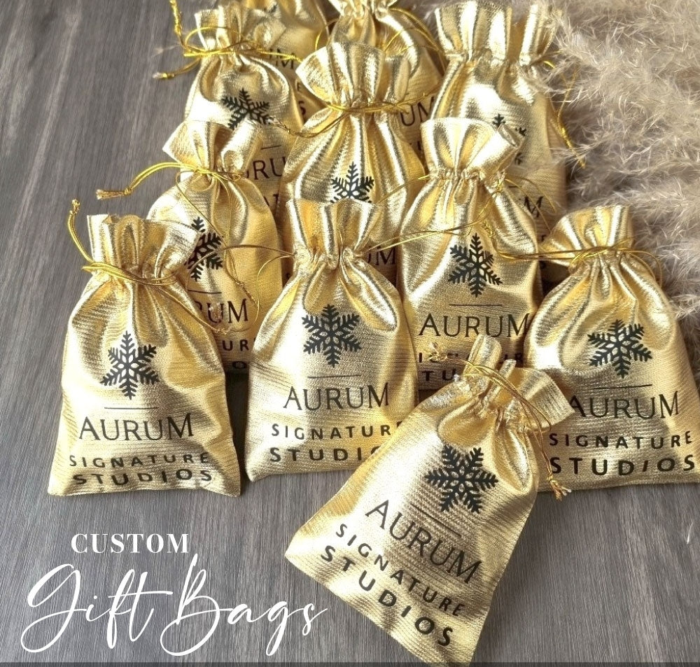 Make a statement with these festive metallic drawstring favour bag closes with a matching draw cord.