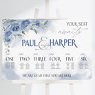 Create a calm, elegant first impression as your guests arrive with our Serene Blues Seating Chart in Landscape format. Designed with soft watercolour florals in soothing blue tones, this seating chart adds effortless sophistication to weddings and special events, guiding guests to their tables in a beautifully organised way.