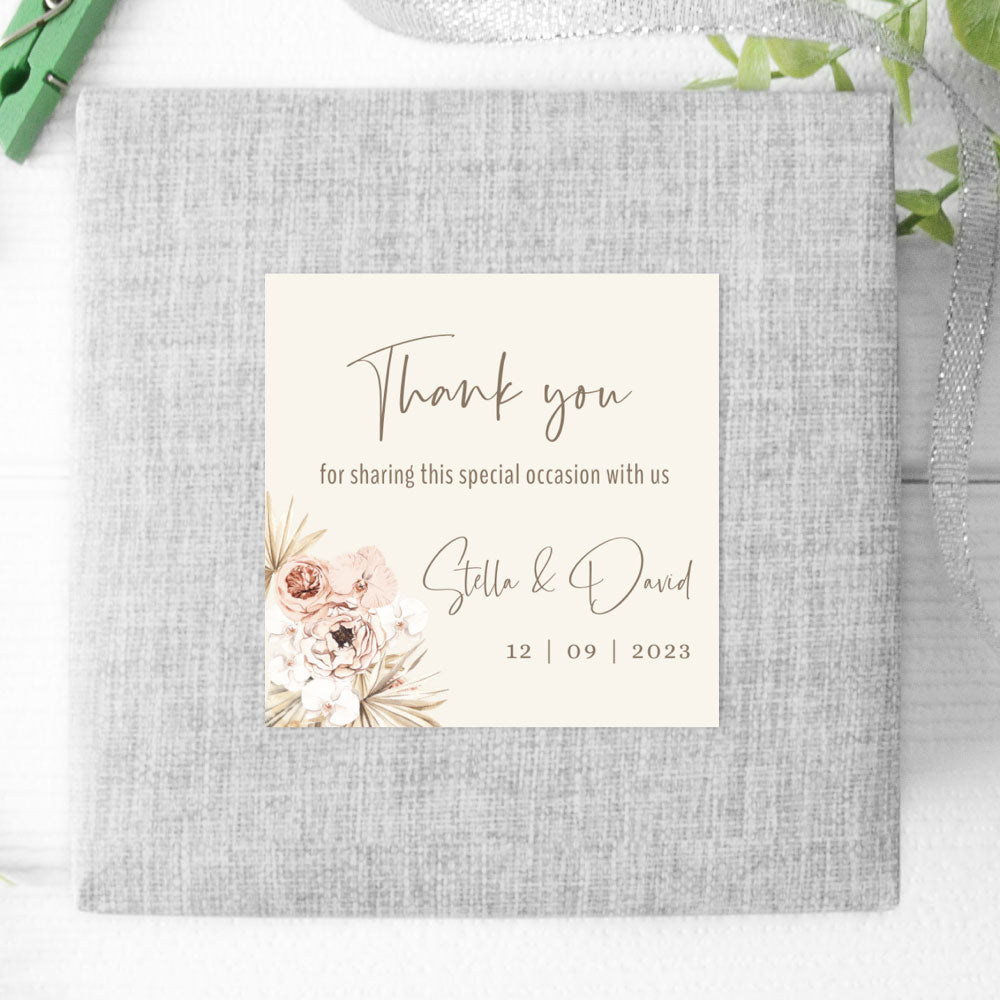 Add some Boho Chic to your event with these new tags. Personalise it and make your wedding or bridal shower gifts extra special by adding a personalised square thank you tag in nude and neutral tones.