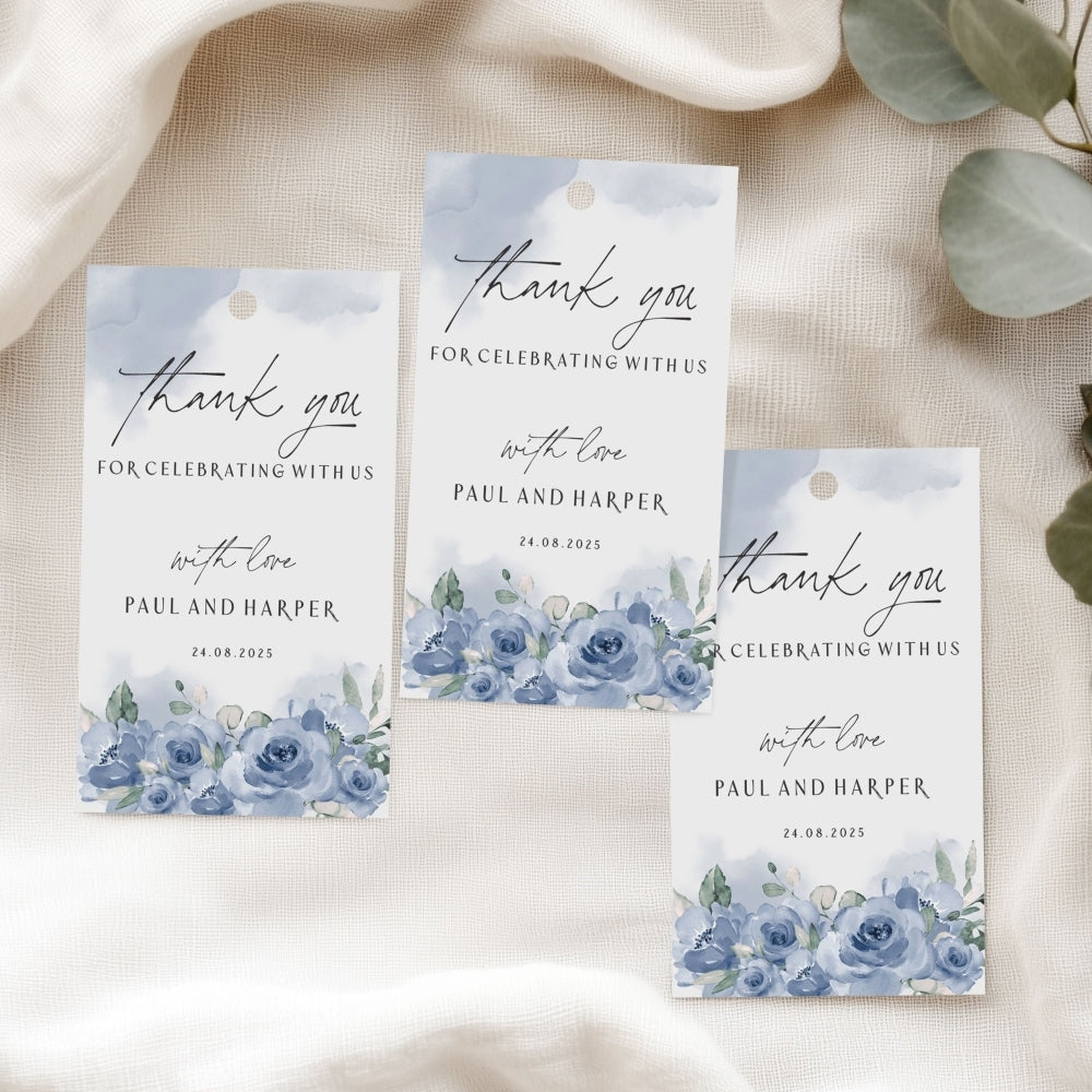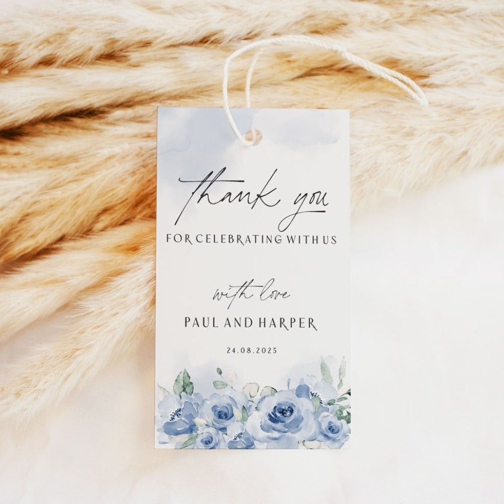 Personalize your gifts by adding a personalised thank you tag with an Serene Blues Design Theme.