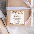 Personalise it and make your wedding or bridal shower gifts extra special by adding a personalised square thank you tag with florals in these warm autumn hues of oranges, browns and greens.