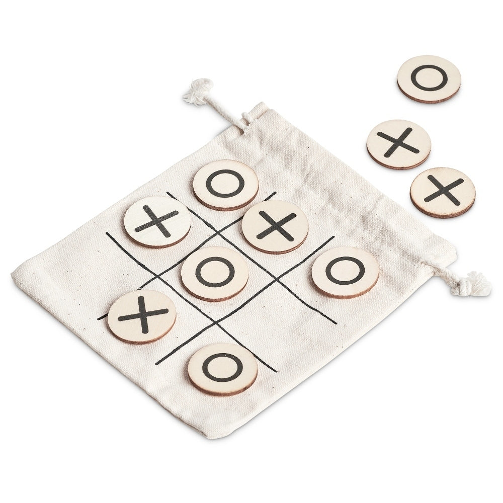 - Includes a total of ten wooden X&O discs in a cotton pouch