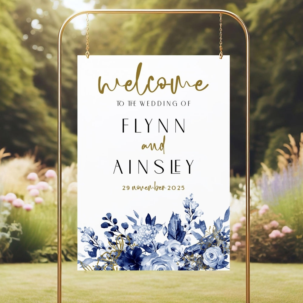 Make a memorable first impression on your guests as they arrive at your wedding, with this Midnight Bloom Welcome Sign.